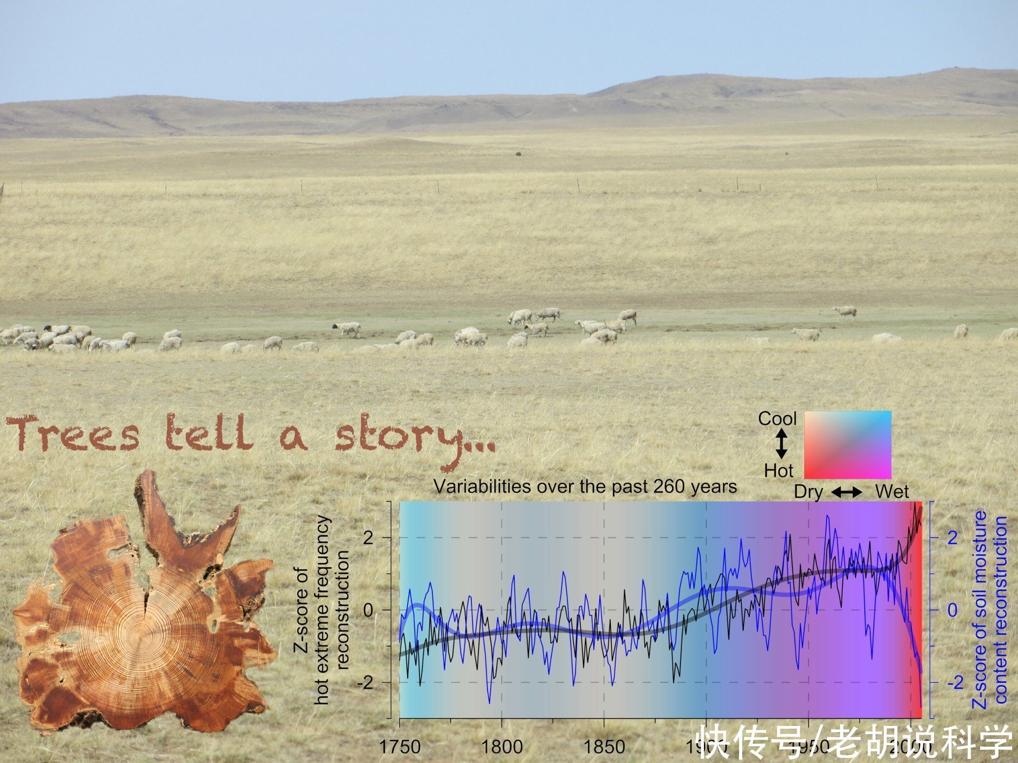 - 树木讲述了东亚内部的热浪和干旱历史。该图像显示了中国北部内蒙古的一个景观,一个苏格松的年轮样本。